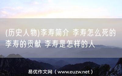 易優(yōu)作文網(wǎng)——(歷史人物)李壽簡介 李壽怎么死的 李壽的貢獻(xiàn) 李壽是怎樣的人