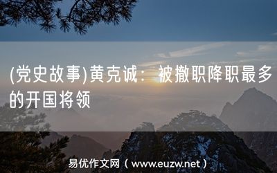 易優(yōu)作文網——(黨史故事)黃克誠:被撤職降職最多的開國將領