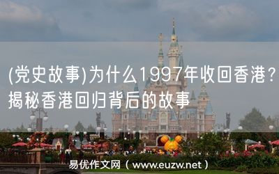 易優(yōu)作文網(wǎng)——(黨史故事)為什么1997年收回香港?揭秘香港回歸背后的故事