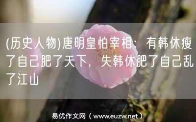 易優(yōu)作文網(wǎng)——(歷史人物)唐明皇怕宰相:有韓休瘦了自己肥了天下,失韓休肥了自己亂了江山