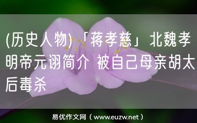易優(yōu)作文網(wǎng)——(歷史人物)「蔣孝慈」北魏孝明帝元詡簡介 被自己母親胡太后毒殺