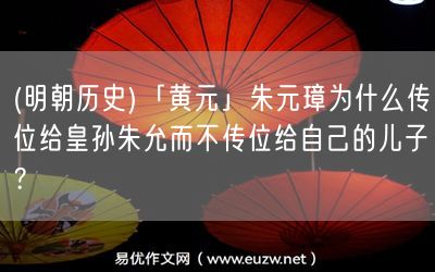 易優(yōu)作文網(wǎng)——(明朝歷史)「黃元」朱元璋為什么傳位給皇孫朱允而不傳位給自己的兒子?