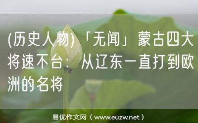 易優(yōu)作文網——(歷史人物)「無聞」蒙古四大將速不臺:從遼東一直打到歐洲的名將