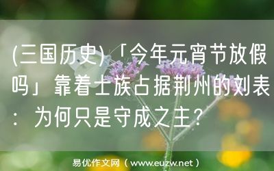 易優(yōu)作文網(wǎng)——(三國(guó)歷史)「今年元宵節(jié)放假嗎」靠著士族占據(jù)荊州的劉表:為何只是守成之主?