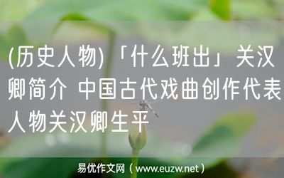 易優(yōu)作文網(wǎng)——(歷史人物)「什么班出」關(guān)漢卿簡介 中國古代戲曲創(chuàng)作代表人物關(guān)漢卿生平