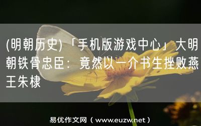 易優(yōu)作文網(wǎng)——(明朝歷史)「手機(jī)版游戲中心」大明朝鐵骨忠臣:竟然以一介書(shū)生挫敗燕王朱棣