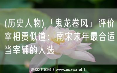易優(yōu)作文網(wǎng)——(歷史人物)「鬼龍卷風(fēng)」評(píng)價(jià)宰相賈似道:南宋末年最合適當(dāng)宰輔的人選