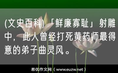易優(yōu)作文網——(文史百科)「鮮廉寡恥」射雕中,此人曾經打死黃藥師最得意的弟子曲靈風。