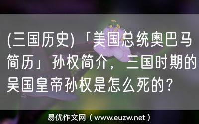 易優(yōu)作文網(wǎng)——(三國(guó)歷史)「美國(guó)總統(tǒng)奧巴馬簡(jiǎn)歷」孫權(quán)簡(jiǎn)介,三國(guó)時(shí)期的吳國(guó)皇帝孫權(quán)是怎么死的?