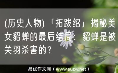 易優(yōu)作文網(wǎng)——(歷史人物)「拓跋紹」揭秘美女貂蟬的最后結(jié)局:貂蟬是被關(guān)羽殺害的?