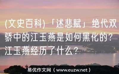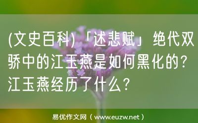 易優(yōu)作文網(wǎng)——(文史百科)「述悲賦」絕代雙驕中的江玉燕是如何黑化的?江玉燕經(jīng)歷了什么?