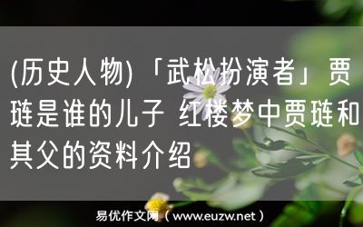 易優(yōu)作文網(wǎng)——(歷史人物)「武松扮演者」賈璉是誰的兒子 紅樓夢中賈璉和其父的資料介紹