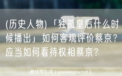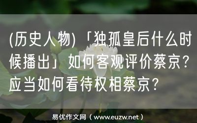 易優(yōu)作文網(wǎng)——(歷史人物)「獨(dú)孤皇后什么時候播出」如何客觀評價蔡京?應(yīng)當(dāng)如何看待權(quán)相蔡京?
