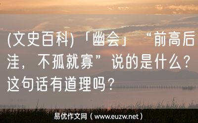 易優(yōu)作文網(wǎng)——(文史百科)「幽會(huì)」“前高后洼,不孤就寡”說的是什么?這句話有道理嗎?