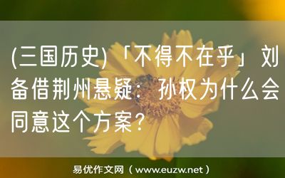 易優(yōu)作文網(wǎng)——(三國(guó)歷史)「不得不在乎」劉備借荊州懸疑:孫權(quán)為什么會(huì)同意這個(gè)方案?