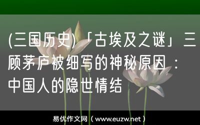 易優(yōu)作文網(wǎng)——(三國(guó)歷史)「古埃及之謎」三顧茅廬被細(xì)寫的神秘原因 :中國(guó)人的隱世情結(jié)