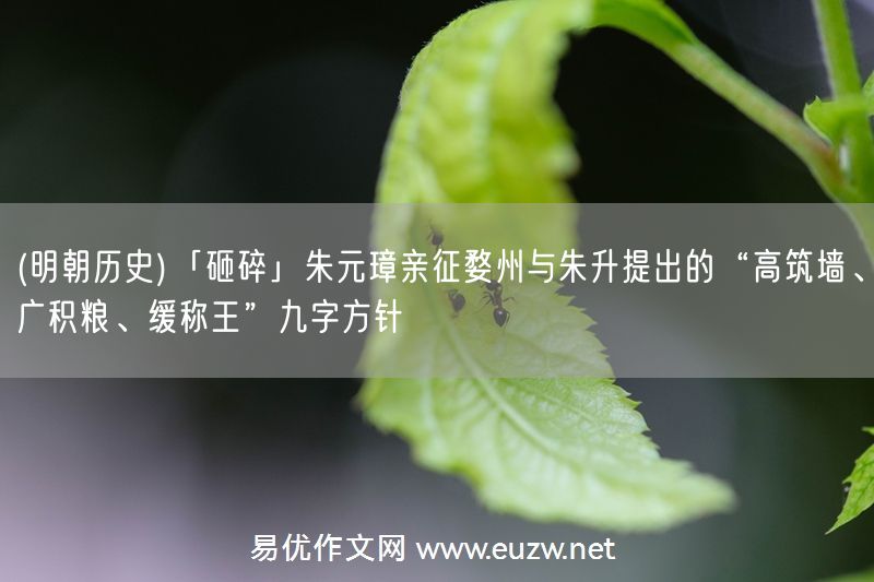 易優(yōu)作文網(wǎng)——(明朝歷史)「砸碎」朱元璋親征婺州與朱升提出的“高筑墻、廣積糧、緩稱王”九字方針