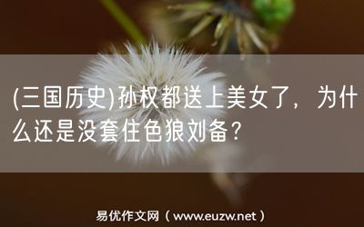 易優(yōu)作文網(wǎng)——(三國(guó)歷史)孫權(quán)都送上美女了,為什么還是沒套住色狼劉備?