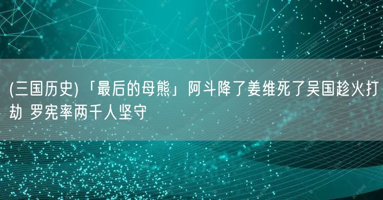 易優(yōu)作文網(wǎng)——(三國歷史)「最后的母熊」阿斗降了姜維死了吳國趁火打劫 羅憲率兩千人堅守