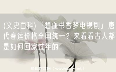 易優(yōu)作文網(wǎng)——(文史百科)「碧血書香夢電視劇」唐代春運(yùn)價(jià)格全國統(tǒng)一?來看看古人都是如何回家過年的