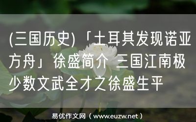 易優(yōu)作文網(wǎng)——(三國歷史)「土耳其發(fā)現(xiàn)諾亞方舟」徐盛簡介 三國江南極少數(shù)文武全才之徐盛生平