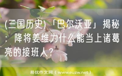 易優(yōu)作文網(wǎng)——(三國(guó)歷史)「巴爾沃亞」揭秘:降將姜維為什么能當(dāng)上諸葛亮的接班人?