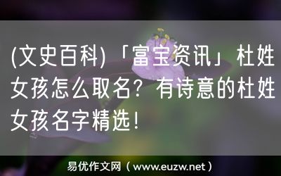易優(yōu)作文網(wǎng)——(文史百科)「富寶資訊」杜姓女孩怎么取名?有詩(shī)意的杜姓女孩名字精選!