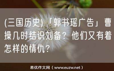 易優(yōu)作文網(wǎng)——(三國歷史)「郭書瑤廣告」曹操幾時(shí)結(jié)識(shí)劉備?他們又有著怎樣的情仇?