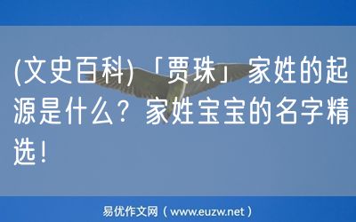 易優(yōu)作文網(wǎng)——(文史百科)「賈珠」家姓的起源是什么?家姓寶寶的名字精選!