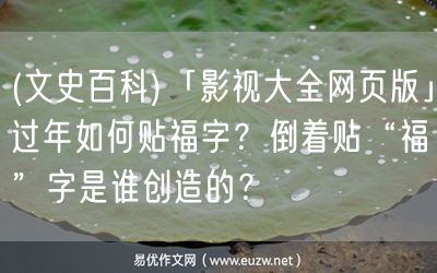 易優(yōu)作文網(wǎng)——(文史百科)「影視大全網(wǎng)頁版」過年如何貼福字?倒著貼“?!弊质钦l創(chuàng)造的?