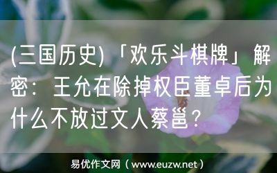 易優(yōu)作文網(wǎng)——(三國歷史)「歡樂斗棋牌」解密:王允在除掉權(quán)臣董卓后為什么不放過文人蔡邕?
