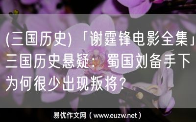 易優(yōu)作文網(wǎng)——(三國歷史)「謝霆鋒電影全集」三國歷史懸疑:蜀國劉備手下為何很少出現(xiàn)叛將?