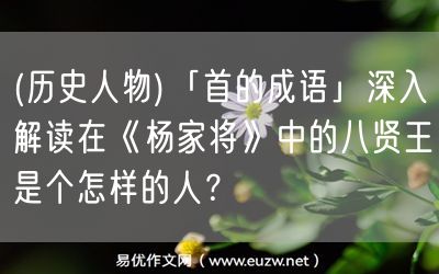 易優(yōu)作文網(wǎng)——(歷史人物)「首的成語」深入解讀在《楊家將》中的八賢王是個怎樣的人?