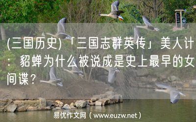 易優(yōu)作文網(wǎng)——(三國歷史)「三國志群英傳」美人計(jì):貂蟬為什么被說成是史上最早的女間諜?