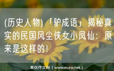 易優(yōu)作文網(wǎng)——(歷史人物)「驢成語(yǔ)」揭秘真實(shí)的民國(guó)風(fēng)塵俠女小鳳仙:原來(lái)是這樣的!