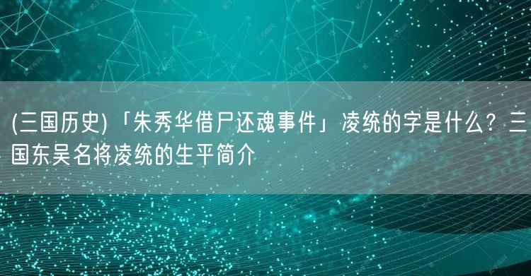 (三國(guó)歷史)「朱秀華借尸還魂事件」凌統(tǒng)的字是什么?三國(guó)東吳名將凌統(tǒng)的生平簡(jiǎn)介