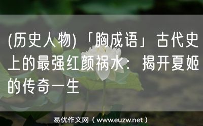 易優(yōu)作文網(wǎng)——(歷史人物)「胸成語」古代史上的最強(qiáng)紅顏禍水:揭開夏姬的傳奇一生