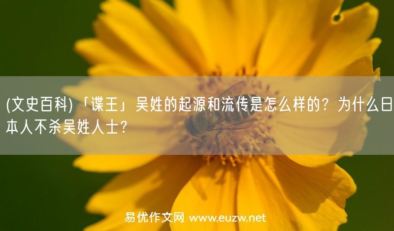 易優(yōu)作文網(wǎng)——(文史百科)「諜王」吳姓的起源和流傳是怎么樣的?為什么日本人不殺吳姓人士?