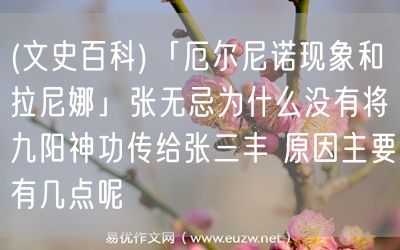 易優(yōu)作文網(wǎng)——(文史百科)「厄爾尼諾現(xiàn)象和拉尼娜」張無忌為什么沒有將九陽神功傳給張三豐 原因主要有幾點(diǎn)呢
