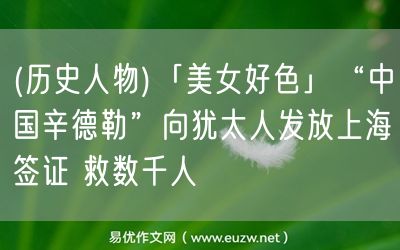 易優(yōu)作文網(wǎng)——(歷史人物)「美女好色」“中國辛德勒”向猶太人發(fā)放上海簽證 救數(shù)千人