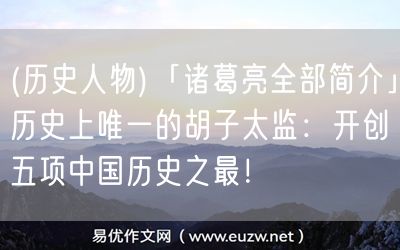 易優(yōu)作文網(wǎng)——(歷史人物)「諸葛亮全部簡介」歷史上唯一的胡子太監(jiān):開創(chuàng)五項中國歷史之最!