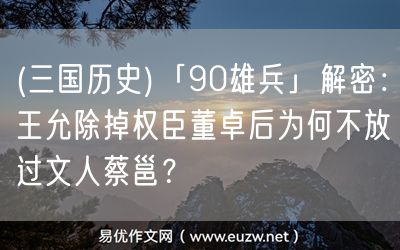 易優(yōu)作文網(wǎng)——(三國歷史)「90雄兵」解密:王允除掉權(quán)臣董卓后為何不放過文人蔡邕?