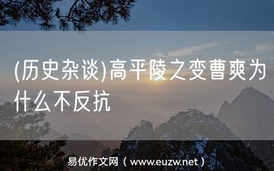 易優(yōu)作文網(wǎng)——(歷史雜談)高平陵之變曹爽為什么不反抗