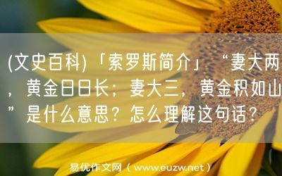 易優(yōu)作文網(wǎng)——(文史百科)「索羅斯簡介」“妻大兩,黃金日日長;妻大三,黃金積如山”是什么意思?怎么理解這句話?