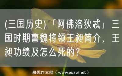 易優(yōu)作文網(wǎng)——(三國歷史)「阿佛洛狄忒」三國時期曹魏將領(lǐng)王昶簡介,王昶功績及怎么死的?