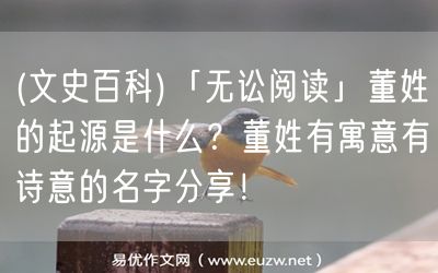 易優(yōu)作文網(wǎng)——(文史百科)「無(wú)訟閱讀」董姓的起源是什么?董姓有寓意有詩(shī)意的名字分享!