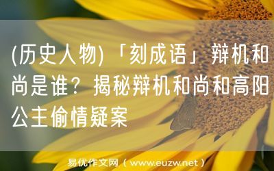 易優(yōu)作文網(wǎng)——(歷史人物)「刻成語」辯機和尚是誰?揭秘辯機和尚和高陽公主偷情疑案
