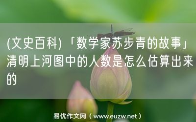 易優(yōu)作文網——(文史百科)「數學家蘇步青的故事」清明上河圖中的人數是怎么估算出來的
