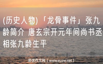 易優(yōu)作文網(wǎng)——(歷史人物)「龍骨事件」張九齡簡(jiǎn)介 唐玄宗開元年間尚書丞相張九齡生平