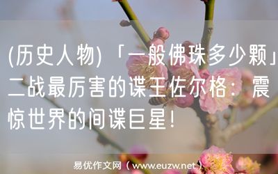 易優(yōu)作文網(wǎng)——(歷史人物)「一般佛珠多少顆」二戰(zhàn)最厲害的諜王佐爾格:震驚世界的間諜巨星!
